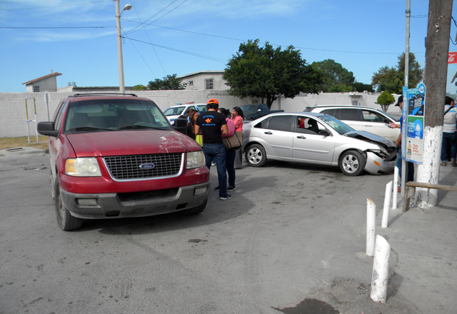 19/11/2015 - Una conductora semi destruyó su automóvil marca Ford Focus al chocarlo con una camioneta Ford Expedition, tras no respetar una señal de alto en el cruce de las avenidas División del Norte y Alameda, del fraccionamiento Las Arboledas