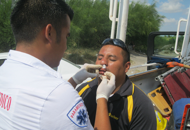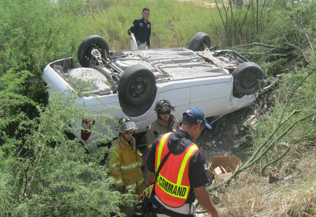 18/08/2015 - Un proveedor y/o contratista, de la empresa Mangueras y Conexiones Del Bravo, estuvo a punto de perder la vida por la mañana, al volcarse con la camioneta que tripulaba, en una cuneta del Libramiento Emilio Portes Gil, antes de llegar al Parque Industrial Finsa, lugar donde resultó con lesiones en la nariz y boca.