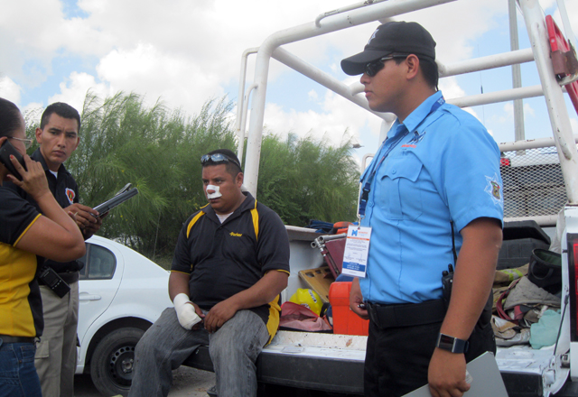 Técnicos en urgencias médicas de Protección Civil le dieron los primeros auxilios, en la escena del accidente, y éste posteriormente, se trasladó a urgencias del Hospital General "Dr. Alfredo Pumarejo".