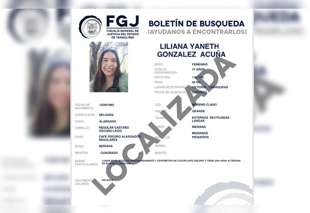 La joven, de 37 años de edad, había desaparecido el 5 de abril en Ciudad Victoria y, tras el reporte de su familia, se iniciaron los trabajos de investigación y búsqueda.