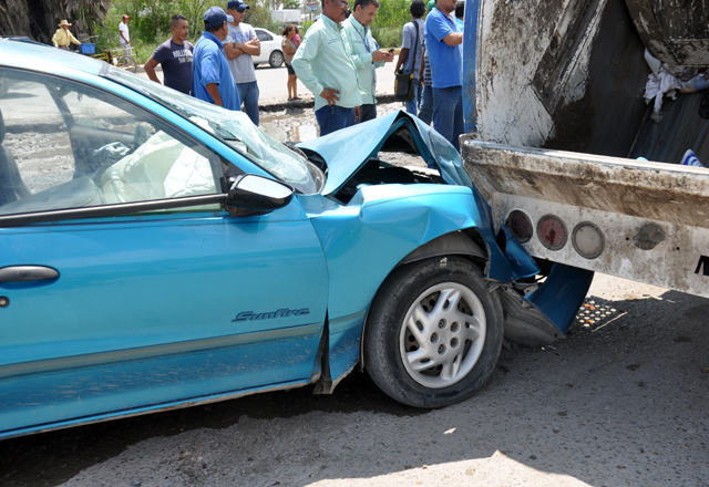 De la responsable sólo se sabe que manejaba un auto Pontiac Sunfire de color verde, pues tras ocasionar el aparatoso percance, ésta sale huyendo y deja su vehículo abandonado, pues quedó muy dañado del frente ya que además de embestir al motociclista, también chocó contra un camión recolector de basura.