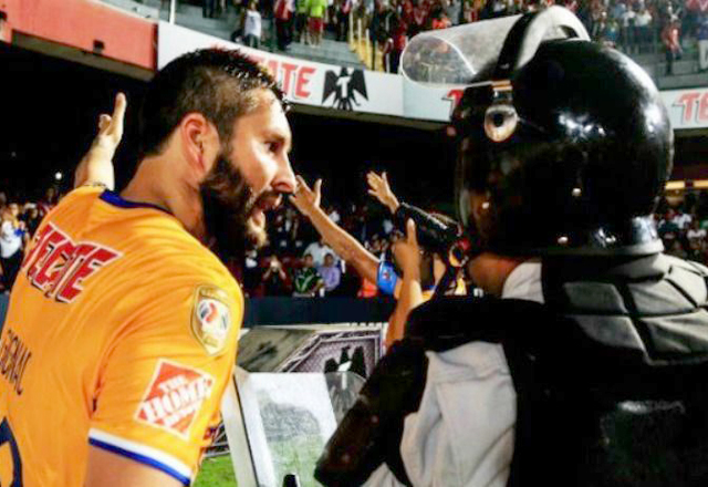 Tanto el delantero francés, como el propio entrenador Ricardo Ferretti, empujaron a los policías encargados de resguardar el lugar, pidiéndoles que defendieran a su porra.