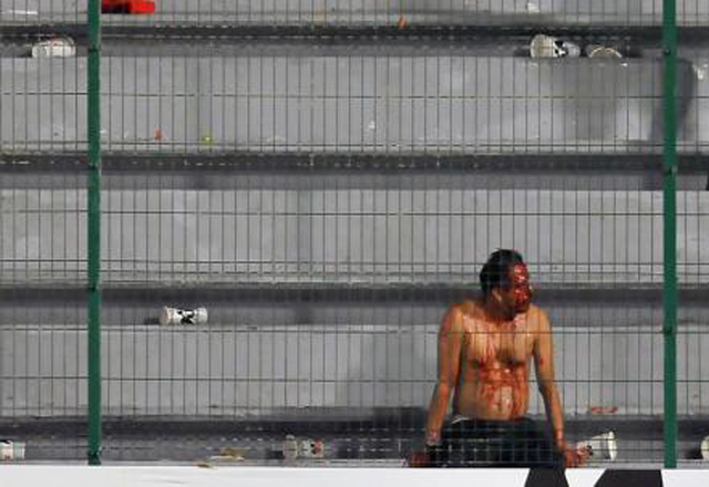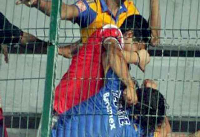 Los aficionados de los escualos lanzaron toda clase de objetos, mientras los seguidores de los felinos corrían y trataban de cubrirse
