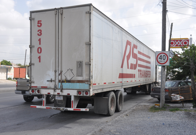 José Oscar Contreras Morales, de 42 años de edad, con domicilio en la calle San Romero No. 116 en el fraccionamiento San Pedro, es el operador de quinta rueda que manejaba un camión Freighleiner modelo 2004 de color blanco, con el cual al no poder calcular bien las dimensiones chocó a un auto de reciente modelo.