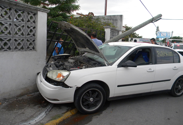 A las 07:58 horas técnicos en urgencias médicas de Protección Civil y elementos del Heroico Cuerpo de Bomberos se trasladaron a las calles Tercera y Veracruz del fraccionamiento Moderno ante el reporte del choque de un automóvil contra un poste y una vivienda.