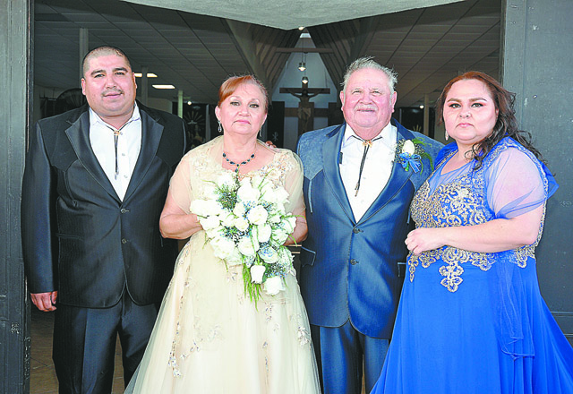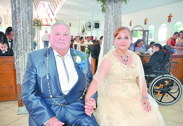En la parroquia Santísima Trinidad reafirmaron por primera vez su compromiso ante el altar, celebrándose una misa de acción de gracias a las 5:00 de la tarde, el sacerdote oficiante felicitó a la ejemplar pareja, por llegar a este grandioso aniversario de bodas que representa la longevidad del matrimonio y su resistencia al paso de los años.