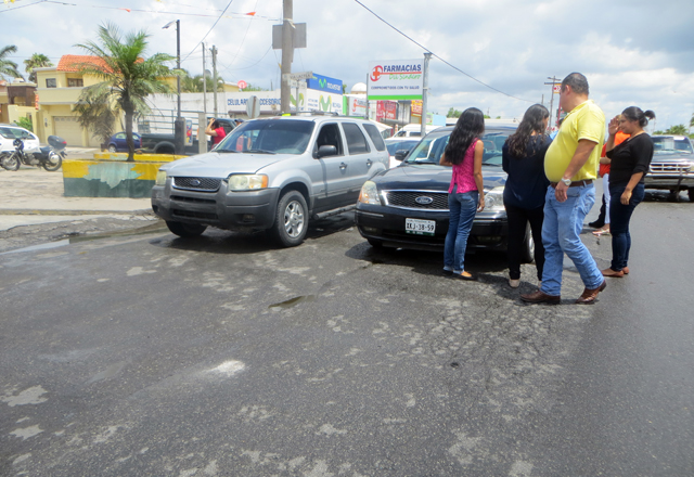 Técnicos en urgencias médicas de Protección Civil, manifestaron que en el choque automovilístico no encontraron personas lesionadas, solamente daños en los autos.