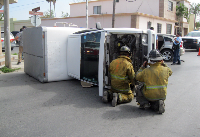 Fue aproximadamente a las 11:00 horas cuando en la radiofrecuencia del Heroico Cuerpo de Bomberos se escuchó el reporte de un choque y volcadura en el cruce de las calles Washington y Guatemala de la colonia Modelo.