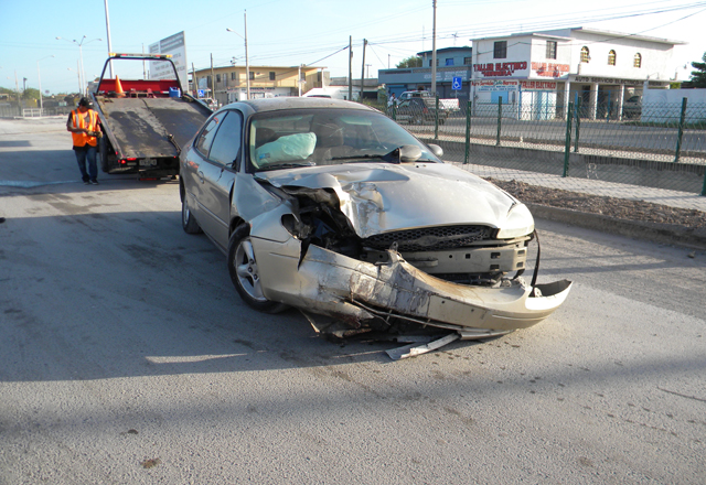 Estando en el lugar confirmaron el reporte, encontrando atravesado sobre el libramiento e impactado contra un poste de concreto, presuntamente de alumbrado público, a un automóvil Ford Taurus que estaba derramando aceite.