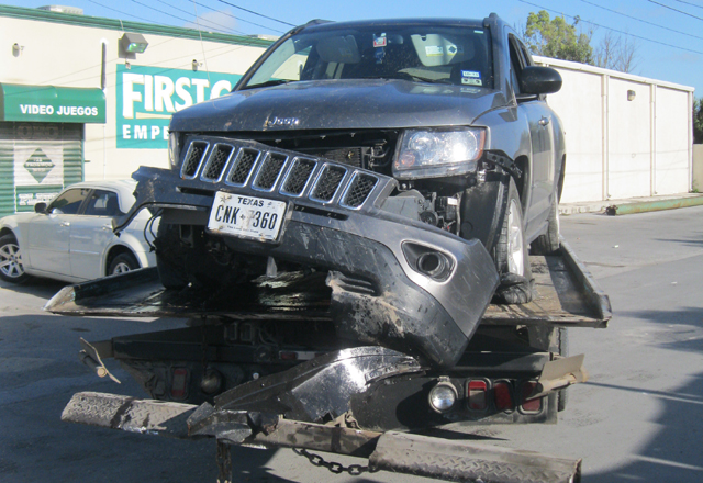 Verónica Saldaña Delgado, de 24 años, del Cerro del Metate número 31, de la colonia Lucio Blanco, dijo a un perito de la Policía Vial, que en la Ford Bronco, iba de poniente a oriente, por la Agapito González y estaba por virar a la izquierda, cuando la rebasa la Jeep Compass, la choca, y se va con los árboles y maceteros.