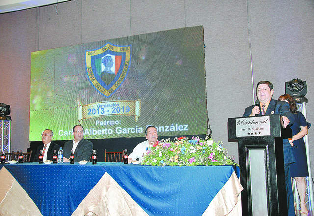 A continuación se dio lectura a la larga reseña empresarial y política del padrino de la generación, C. P. Carlos Alberto García González, Secretario de Desarrollo Económico en el Estado, haciéndole entrega de un reconocimiento especial de parte de la dirección, personal docente y alumnos graduados.