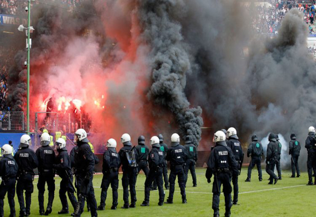 El Hamburgo iba ganando su partido en casa ante el Borussia Mönchengladbach por 2-1 cuando el duelo fue interrumpido en los últimos minutos por protestas de hinchas que lanzaron bengalas al campo de juego.