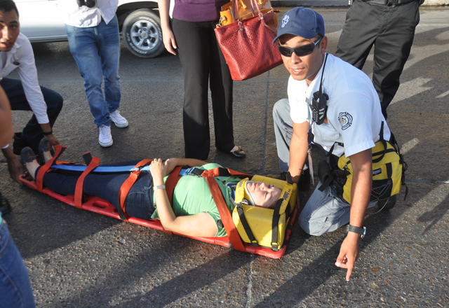 Técnicos en urgencias médicas de Protección Civil, y de la Cruz Roja, le dieron los primeros auxilios, siendo estos últimos quienes la trasladaron al Hospital General "Dr. Alfredo Pumarejo".