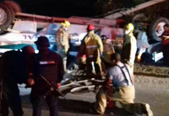 10/10/2017 - Un camión de pasajeros, de la empresa Maquilpark, volcó en la carretera Río Bravo - Reynosa, Tamaulipas, dejando siete muertos y 40 lesionados.