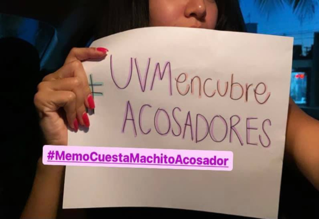 “UVM encubre acosadores #Memo Cuesta machito acosador”, "Memo Cuesta misógino UVM”, #UVMencubreACOSADORES, #MemoCuestaMachitoAcosador.