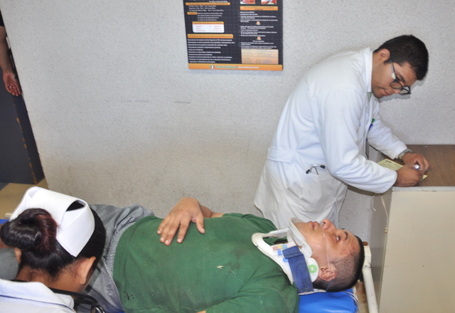 Fue entonces que de inmediato mandaron a la ambulancia a la calle San Juan del Río, para que lo atendieran, pero ya había sido atendido por los socorristas de Protección Civil, quienes le proporcionaron las debidas atenciones e inmovilizaron, entregando a los socorristas de Cruz Roja listo para trasladar.