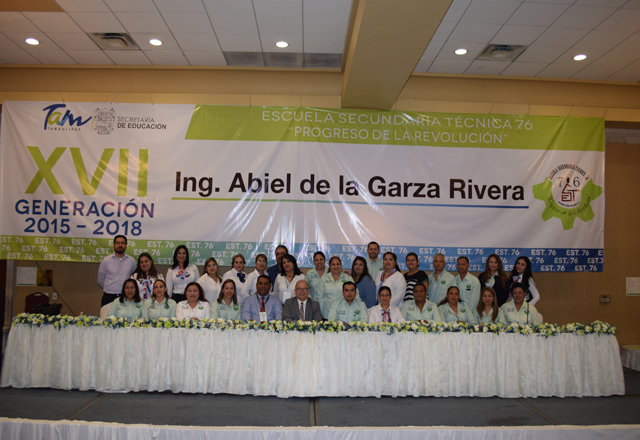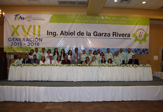 30/06/2018 - Emotiva ceremonia de entrega simbolica de constancias celebró el pasado 22 de junio la Escuela Secundaria Técnica 76 “Progreso de la Revolución” para entregar a la sociedad a más de 230 alumnos, pertenecientes a la Décima Séptima Generación 2015-2018 “Ing. Abiel de la Garza Rivera” del Turno Matutino que culminaron satisfactoriamente sus estudios y entregar las Medallas al Mérito Educativo a los estudiantes más destacados.