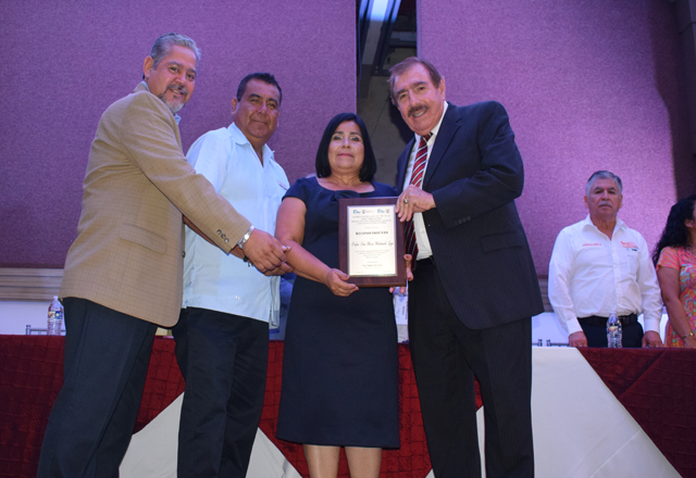 Honor a quien honor merece, el director Profr. Rogelio cinta garcia, entrego reconocimiento por su valioso apoyo para con la institucion durante 30 años de servicio a la Profra. Ana Maria Maldonado Lugo, de la misma manera reconocio a la madrina de generacion 2015-2018 la Profra. Marisela Perales jaramillo.