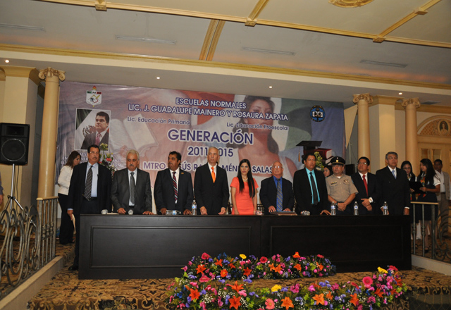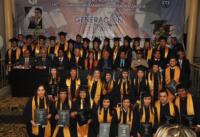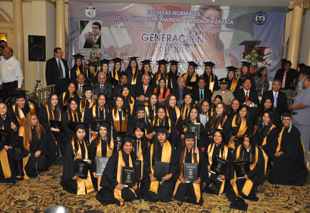 En relevante ceremonia celebrada el pasado 15 de julio en el salón Versalles del Hotel Residencial Inn & Suites, egresaron de las Escuelas Normales "Lic. J. Guadalupe Mainero y Rosaura Zapata" las Generaciones 2011-2015 de Licenciados en Educación Primaria y Preescolar, siendo apadrinados por el Mtro. Jesús Rafael Méndez Salas.
