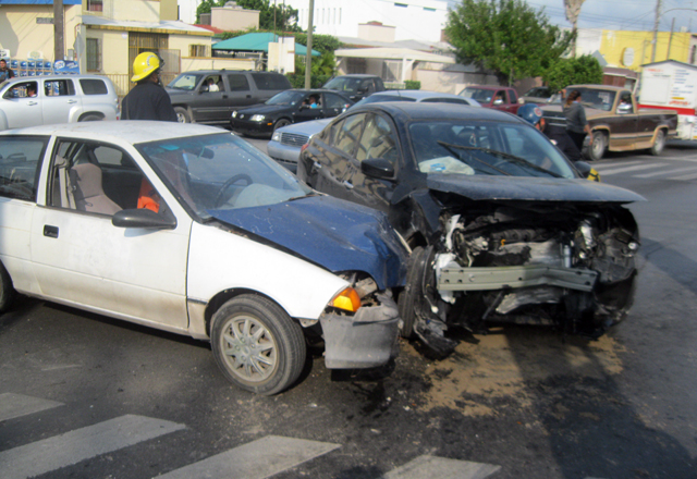 Maley en el carro Nissan, y el Chevrolet Metro, iban de norte a sur por la calle 16, siendo impactados en el boulevard, por el Malibu, en dirección al poniente, y se estrella con un muro.