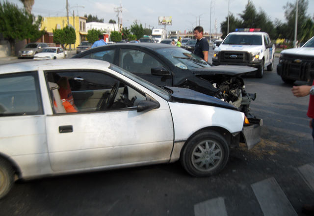 12/04/2016 - Cuatro personas lesionadas, una mujer adulta, una jovencita y dos niños, así como daños materiales por muchos miles de pesos, fue el saldo de un fuerte choque carambola de tres vehículos, la tarde de ayer, en el cruce del boulevard Manuel Cavazos Lerma y la calle 16, del fraccionamiento Los Sauces.