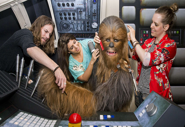 En la construcción de “Chewbacca” se contrataron a diez insertantes de cabello profesionales que tardaron cerca de mil horas colocando los cabellos de un yak real sobre la estatua.