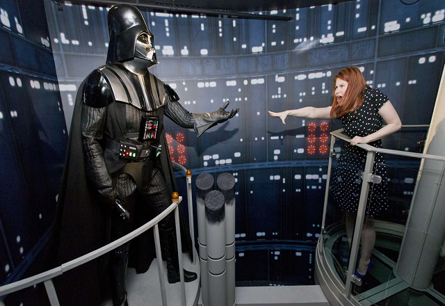 Esta muestra de 16 estatuas y 11 juegos permite a los visitantes interactuar con las estatuas de Chewbacca, Dark Vader, Luke Skywalker, La Princesa Leia, Han Solo, Jabba y Yoda, además de visitar escenarios como el interior de la nave “Millennium Falcon”.