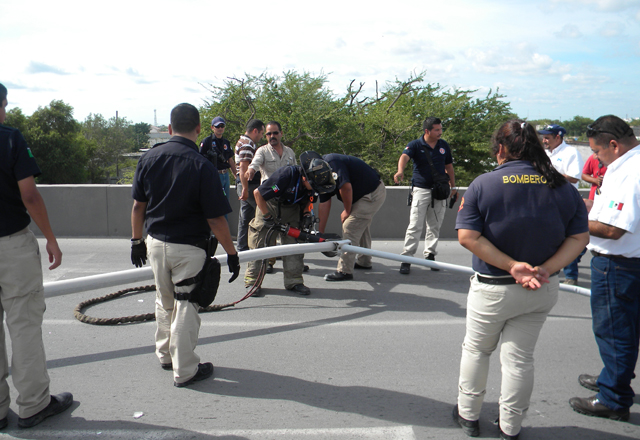 13/10/2015 - Lesionada al estrellarse contra el muro de contención y con un poste de fierro de alumbrado público, que quedó derribado y obstaculizando la circulación vehicular en la joroba del puente de las avenidas Roberto Guerra Cárdenas y Acción Cívica, resultó una estudiante del Instituto Tecnológico de Matamoros.