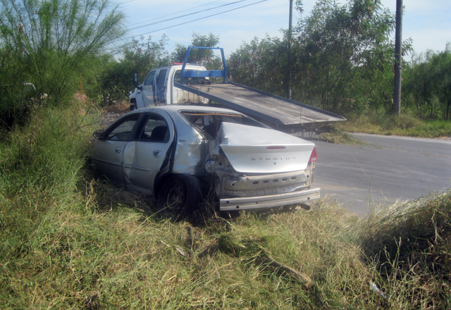 Manifestaron que al arribar al sitio, confirmaron el reporte del accidente, encontrando impactado el poste de fierro de alumbrado público, y en canal a un automóvil marca Dodge Stratus, color gris, de cuatro puertas, modelo 2001.