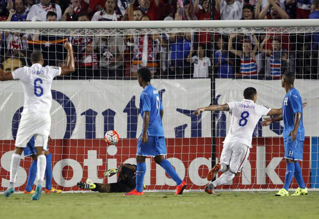 8/07/2015 - La selección de Estados Unidos tuvo que luchar y sufrir durante los 90 minutos para alzarse con la victoria por 2-1 ante Honduras en su debut en la Copa de Oro. Con un par de goles del veterano delantero Clint Dempsey, el anfitrión se estreno con una victoria en el Toyota Stadium, de Frisco (Texas) ante más de 21.000 espectadores.