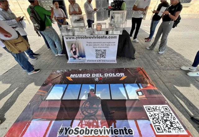 La madre de la joven y un grupo de personas que la apoyan, se apostaron a un lado del Ayuntamiento para hacer patente su indignación porque a más de un año del accidente que no debió ocurrir, no ha recibido ningún tipo de apoyo de Engie de México.