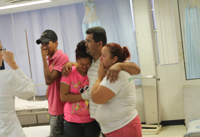 A las 16:20 horas un automóvil marca Pontiac, color gris, entró a los patios del hospital, del que descendió la señora María de Jesús Moreno Rocha y entró directamente a urgencias pediátricas con su nieta en brazos Kimberly Sujey León Yzeta, presentando una esquirla de bala en el lado izquierdo del rostro y parte de la ojiva de la bala en un costado.