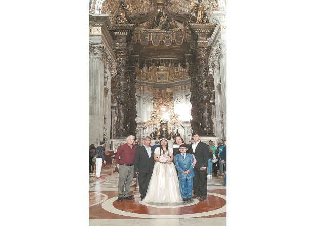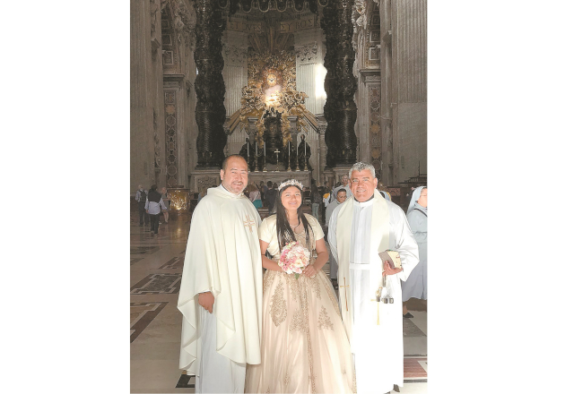 En la capilla Juan Pablo II, Basílica de San Pedro, Cd. del Vaticano, Roma, se ofició una misa de acción de gracias en honor de la quinceañera por los sacerdotes Jorge Adalberto Villanueva Morales y Mauricio Jiménez Rocha.