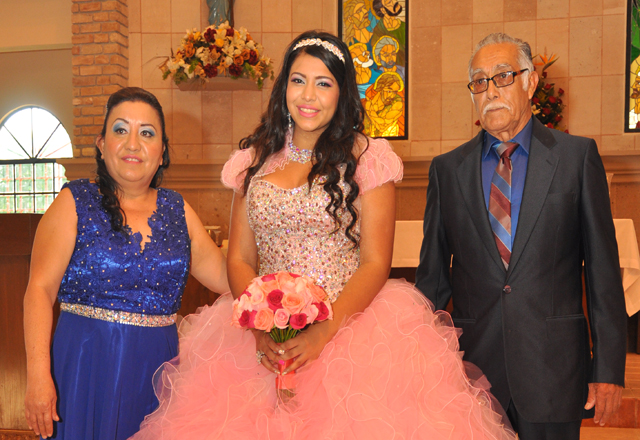 12/09/2015 - Fue una dulce promesa que su amada y guapa mamá, Nora Pérez, le hizo desde muy pequeña, que al cumplir sus soñados quince años le ofrecería una hermosa fiesta por todo lo alto, quizá la más sonada de todo su colegio, por ello la tarde del pasado 5 de septiembre la preciosa jovencita KENNIA VÁZQUEZ viajó en una hermosa camioneta, en color negro, hasta la Iglesia de San Juditas Tadeo para dar gracias al Creador por las bendiciones recibidas, fue una ceremonia muy especial, en la que estuvo acompañada de su emocionada familia.