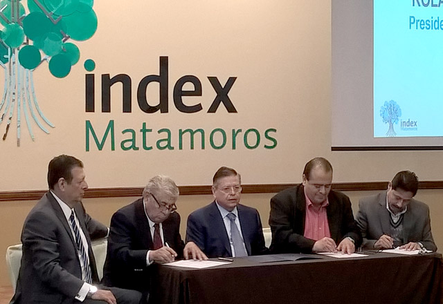 El convenio fue firmado por el Lic. Agustín de la Huerta Mejía, Director General Conalep Tamaulipas; Ing. Rolando González Barrón, Presidente de Index Matamoros; Ing. Conrado Yépez Aguilar, Director de CAST Matamoros; Ing. Ismael Colmenero, Director del plantel Conalep Matamoros y C.P. Roberto Mattus, Director Index Matamoros.