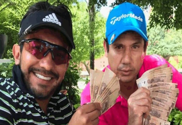 En la imagen, se puede ver al funcionario morelense muy sonriente acompañado por David Tawil, ambos sostienen varios billetes de 500 pesos en forma de abanico.