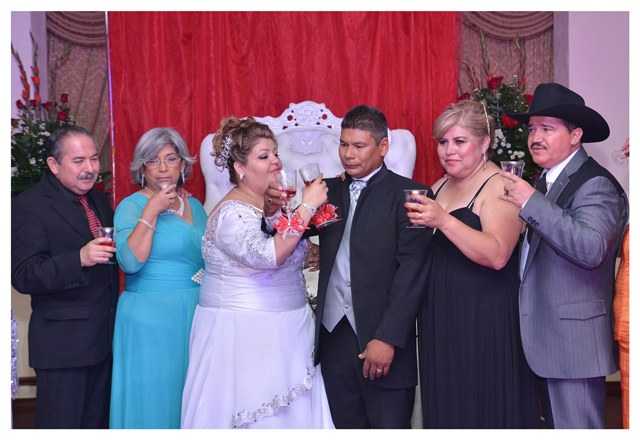 Durante la ceremonia aceptaron amarse y respetarse, intercambiando anillos y recibiendo la bendición de la iglesia, se convirtieron en marido y mujer. La elegante recepción se realizó en el salón del Campestre Delago, realizando su entrada la pareja de enamorados, bailando por primera vez como esposos al ritmo de una romántica melodía, para después hacerlo con sus padres. Posteriormente se realizaron los tradicionales juegos y la novios compartieron estos especiales momentos con todos sus invitados, los cuales se tomaron la fotografía del recuerdo y les desearon felicidad eterna en esta nueva etapa que emprenden como esposos.