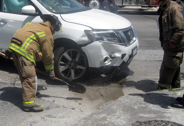 Al sitio del aparatoso percance llegaron patrulleros y peritos de la Policía Vial para tomar conocimiento de los hechos, siendo informados por la ofendida María Monserrat que en la camioneta circulaba de norte a sur con vía libre por la calle 14 y al llegar a la Río Bravo impacta al carro Ford Mustang que se "vuela" la señal de alto al desplazarse en dirección de poniente a oriente.