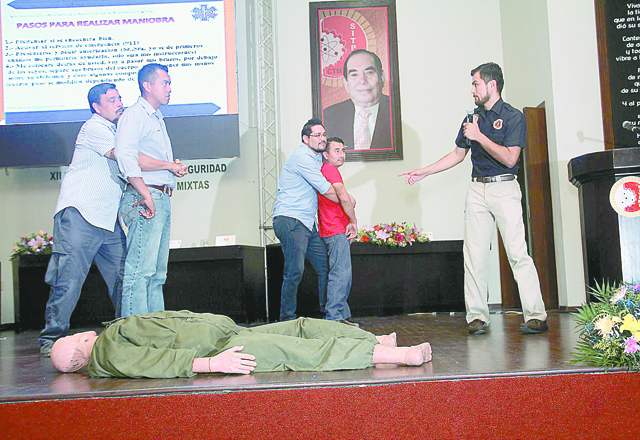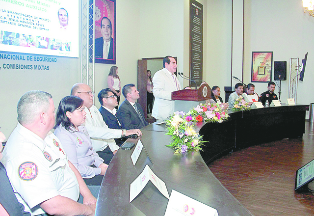 Continuando con el protocolo el C.P. Jesús Mendoza Reyes, Secretario General del SITPME, dirigió unas palabras a todos los asistentes en las que cabe destacar dijo: “Este seminario será de gran utilidad para lograr el continuo mejoramiento de las condiciones de seguridad y salud en el trabajo, reiterando que la seguridad en el trabajo debe lograrse con la voluntad de todos los que participamos en el proceso de producción, es decir, las empresas y los trabajadores, este seminario tiene como objetivo fundamental, actualizarnos en el conocimiento de la normatividad y funcionamiento de estos órganos colegiados llamados Comisiones Mixtas, aprovecho esta ocasión para dar énfasis especial al tema de los primeros auxilios, debido a que ante una situación de accidente, brindar una actuación responsable y oportuna con los conocimientos y capacitación necesaria, pueden hacer la diferencia entre la total recuperación o las secuelas, o peor aún entre la vida y la muerte”. Continuó diciendo: “He establecido como uno de los principales compromisos de nuestra organización sindical el inculcar tanto en los agremiados como en las propias empresas, la cultura de la educación y capacitación de los trabajadores, y con este tipo de seminarios pretendemos inculcar en la clase trabajadora y también en los representantes de las empresas, el significado de la nueva cultura laboral y la cultura de la seguridad, en beneficio de todos los que laboramos en los centros de trabajo. Para concluir sin más preámbulo declaro formalmente inaugurados los trabajos de este importante seminario, mediante el cual nuestra organización sindical en coordinación con la Unidad Educativa que lleva mi nombre pone a su alcance las herramientas y conocimientos necesarios respecto a estos temas de vital importancia para nuestras actividades en los centros de trabajo”.