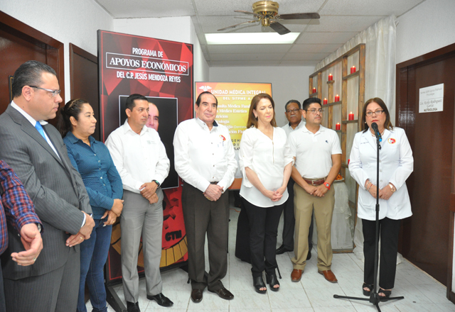 Mencionó muy especialmente a todo el personal que constituye esta clínica, haciendo posible que la gente que menos tiene reciba estos servicios de manera gratuita, donde con los brazos abiertos se recibirán a todos ellos en un ambiente de confianza que sirva de aliciente a sus vidas, reiterando a los presentes que los servicios que se brindan en esta clínica son completamente gratuitos, principal objetivo del SITPME, que siempre se ha ocupado del bienestar y la salud de sus agremiados, siendo un orgullo inaugurar esta Unidad Médica Integral del SITPME, en la que se cuenta con los servicios de medicina preventiva, consulta médica y atención de urgencias, entre otros servicios médicos, reafirmando así el compromiso con los agremiados de poner a su alcance la atención médica. La misión de esta unidad médica se ha realizado bajo el concepto de considerar que la salud no es solamente la ausencia de afecciones o enfermedades, si no que es un estado completo de bienestar físico y mental, por eso no sólo se busca atender con el servicio de consulta médica, si no que el sindicato quiere que la familia SITPME sea de agremiados verdaderamente saludables que cuenten con un bienestar físico y mental.