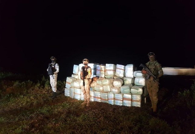 Eran 65 paquetes que contenían 588 kilos de marihuana, 810 kilos de metanfetamina y 8 kilos de semilla de marihuana. No se reportaron personas detenidas.