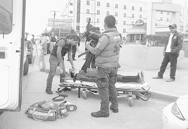 Técnicos en urgencias médicas de la Cruz Verde asistieron a la lesionada y la trasladaron a la sala de urgencias del hospital general.