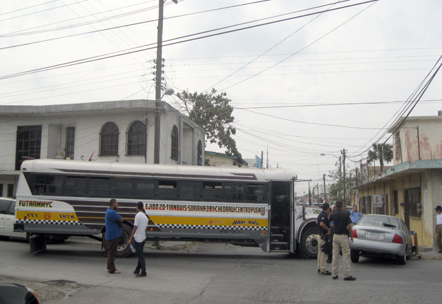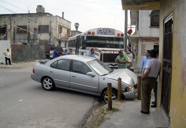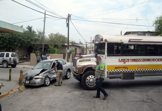 Luis Eduardo Mayo López, de 21 años de edad, con residencia en la calle Manuel Cepeda de la Torre número 10, de la colonia Ricardo Ramos, le dijo a un perito de la Policía Vial que en el autobús iba de norte a sur, sobre la calle Cuatro, y al llegar a la Mina, chocó contra el automóvil que se atravesó, y lo proyectó con unos tubos de protección.