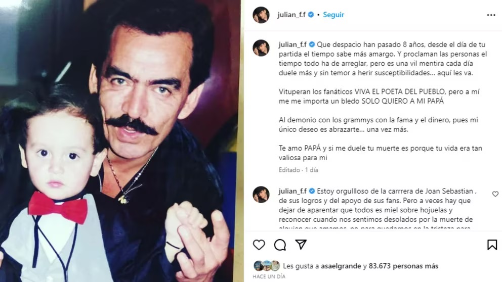 El mensaje refleja el profundo amor que Julián sentía por su padre, a pesar de que había pasado ocho años desde su partida. Es un mensaje desgarrador y lleno de dolor que ha dejado a muchos de sus seguidores sin palabras.
