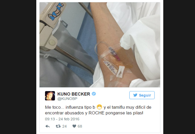 "Me tocó... influenza tipo b y el tamiflu muy dificil de encontrar abusados y ROCHE ponganse las pilas!" escribió