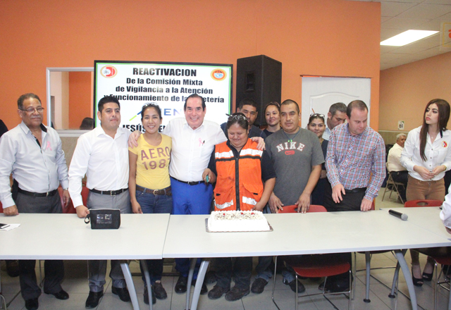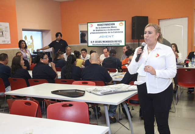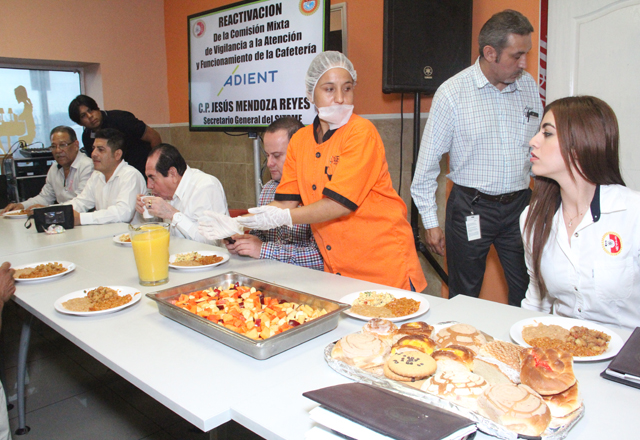 14/10/2017 - En el marco del 27 aniversario de la fundación del SITPME, el C.P. Jesús Mendoza Reyes Secretario General, en conjunto con la Unidad Medica Integral y Akropolis Spa continuaron las labores de la Comisión Mixta de Vigilancia a la Atención y Funcionamiento de Cafeterías dentro de las empresas afiliadas, para garantizar una sana alimentación para sus agremiados, durante una ardua semana de trabajo toco el turno en esta ocasión a la empresa ADIENT en la cual aprovechando la visita del C. P. Jesús Mendoza Reyes se llevo a cabo grata convivencia con los operadores y directivos en la cafetería de la empresa, para celebrar a los operarios que cumplieron años, momento en el que se dieron recomendaciones de salud e higiene por parte de la Directora de la Unidad Medica Integral, Dra. Francisca Ochoa Gamez, y del personal de Akropolis Spa, todas estas acciones se llevan a cabo gracias al interés que el Secretario General y su comité ejecutivo tienen por que todos los agremiados a esta gran agrupación que se a convertido en un Sindicalismo con Visión y futuro, Unidad, Trabajo y Progreso.
