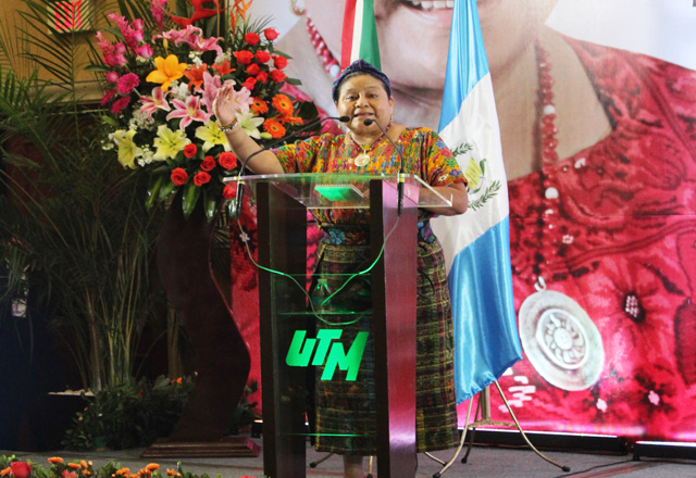 Mujer Maya-kiché, que nació en la aldea Laj Chimel, en Guatemala llegó puntual a su cita con los alumnos de la Universidad Tecnológica de Matamoros; entró al recinto designado para la conferencia “Derechos y Oportunidades para los estudios universitarios de los jóvenes en el siglo XXI”, acompañada de Mónica González García, representante del Gobernador de Tamaulipas, Ing. Egidio Torre Cantú; del subsecretario de Educación Media Superior y Superior, Julio Martínez Burnes y por el rector de UTM, José AntonioTovar Lara.
