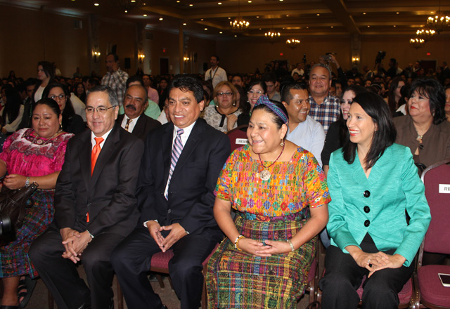 Los aproximadamente mil 800 asistentes reunidos para escuchar la magna conferencia de la defensora de los derechos humanos de los índigenas, le brindaron un cálido recibimiento que minutos más tarde, desde el pódium, la Premio Nóbel agradeció las muestras de cariño.