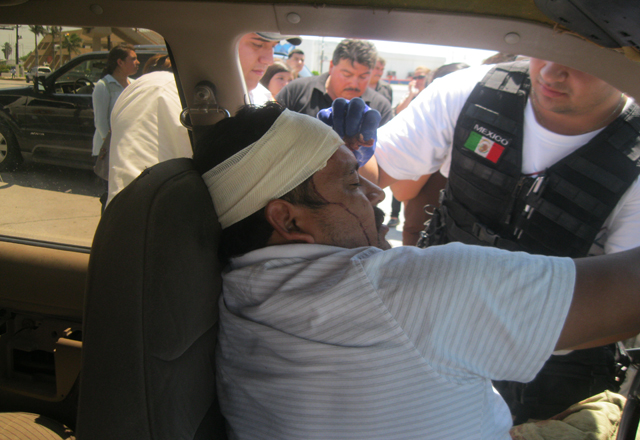 Le dieron los primeros auxilios al lavacarros Carlos Enrique Rangel Zúñiga, el cual resultó con heridas en la cabeza, mismo que iba de acompañante en la camioneta Ford Explorer.