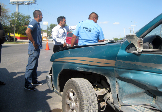 Al decir de Martín de la Cruz Reyes, de 29 años de edad, con residencia en calle Ocho número 140, del fraccionamiento Infonavit Molinos del Rey, en su camioneta pick up, marca Ford F-150, color rojo, circulaba de poniente a oriente sobre la carretera del Sendero Nacional, y al llegar a la entrada del fraccionamiento Vamos Tamaulipas, impacta el frente de su unidad motriz contra el costado medio izquierdo de la pick up marca Nissan, modelo 1997, color verde, que le atravesó en dirección de sur a norte.